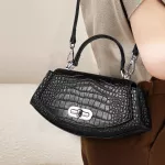 Make a statement wherever you go with this stunning black crocodile pattern cowhide crossbody bag. Designed for the modern woman, this bag effortlessly blends luxury, practicality, and style. The sleek half-moon shape and distinctive crocodile texture make it a standout piece that complements any outfit, whether you're heading to a formal event, casual outing, or a night out with friends. Crafted from high-quality cowhide, this bag is durable and exudes sophistication.