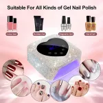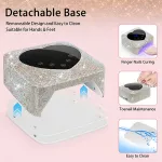 Unlike traditional nail lamps, this model combines high power with portability. The rechargeable battery eliminates the need for cords, while the stylish rhinestone accents and heart-shaped LCD screen add a touch of elegance. With five timer settings and an energy-efficient design, this UV LED nail lamp is perfect for achieving flawless, long-lasting nails with minimal effort.