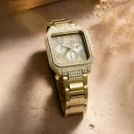 - 35MM Stainless Steel Case – Durable and elegant with a polished gold-tone finish.