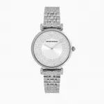 Elevate your style with the Emporio Armani Women's Silver Stainless Steel Quartz Watch. This classic yet sophisticated timepiece is the perfect accessory for any occasion, whether you're heading to an important meeting or enjoying an elegant evening out. The sleek silver design, adorned with shimmering rhinestones, embodies luxury and grace, making it an essential addition to your watch collection.