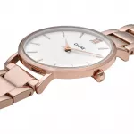- Elegant stainless steel case and bracelet in a soft pink tone