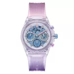 Whether you're heading to work, meeting friends, or dressing up for an event, the Guess Athena Quartz Watch adds a touch of contemporary elegance to any outfit. Its unique transparent design and vibrant purple strap make it an eye-catching accessory that complements a variety of styles.