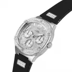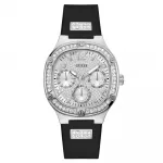 Elevate your wristwear with the Guess Duchess Dual-Calendar Quartz Watch, a perfect blend of sleek design and advanced functionality. This watch features a stainless steel grey case, complemented by a durable black silicone strap for a bold yet sophisticated look. Whether you're heading to the office, a night out, or an outdoor adventure, this timepiece is built to match any occasion.