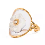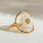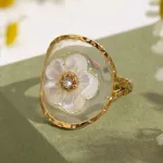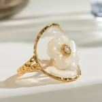 Whether you're looking for a gift for a loved one or a stylish addition to your own collection, this ring is a perfect choice. The combination of classic gold, organic shell, and floral design symbolizes elegance, femininity, and nature's beauty.