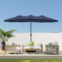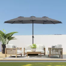 Transform your outdoor space into a stylish and relaxing oasis with our 15ft Oversized Patio Umbrella. This double-sided outdoor umbrella is designed to provide extra-large shade, making it ideal for your backyard, deck, poolside, or commercial setting. Its generous 15ft rectangular canopy easily covers multiple lounge chairs and large tables, ensuring that you, your family, and your guests can enjoy a cool retreat from the sun.