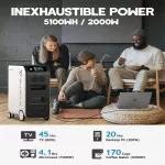 This solar generator is packed with features that make it stand out. The 5100Wh battery gives you ample power to keep things running for a day or two. Its flexible and user-friendly design includes up to 15 outlet sources, meaning you can power multiple devices at once. The system is also capable of seamlessly switching to emergency backup mode when the power goes out. The built-in advanced Battery Management System (BMS) ensures safety, longevity, and the highest performance. Plus, with the ability to upgrade its firmware over the internet, you can rest assured that your solar power station will always be improving.Key Features: