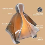 - Convenient Design: The heating blanket shawl includes two front pockets for storing small items, and snaps to secure it in place, so you can move freely and comfortably while staying warm.