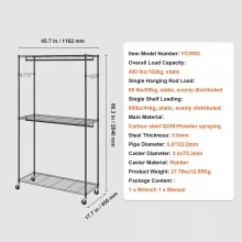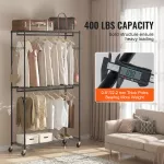 - Heavy-Duty Durability: Crafted from thickened carbon steel with a 0.9-inch diameter, this rack can hold up to 400 lbs of weight, offering secure support for all your garments. Each individual rod can hold up to 65 lbs, and each shelf can support 90 lbs—ideal for heavy-duty use in any home or commercial setting.
