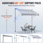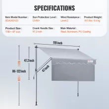 With a height-adjustable range of 86" to 122", this awning easily fits various doors and windows. The 0° to 90° angle adjustment allows you to control the amount of shade and coverage needed. Simply use the smooth crank handle to extend or retract the awning with ease.