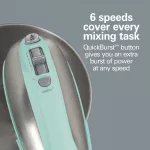 Featuring a 290-watt peak power motor, this mixer handles everything from delicate batters to thick dough with ease. The 6-speed settings give you total control, allowing you to start slow and gradually increase speed to prevent messes. Need an extra boost? The QuickBurst™ button provides a surge of power whenever you need it.