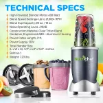 Equipped with a high-speed motor that reaches up to 21,000 RPM, this blender delivers professional-grade performance in a compact design. The 360-degree cylindrical impact technology extracts maximum nutrients, giving you the best from your ingredients. With a sleek and modern look, it sits seamlessly on your countertop without taking up too much space, making it perfect for small kitchens, dorms, or offices.
