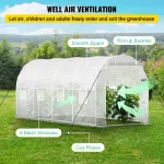 This tunnel greenhouse features eight mesh windows that allow for maximum airflow while keeping pests and debris out. The roll-up zippered door provides easy access and allows fresh air to circulate, creating an ideal climate for healthy plant growth.