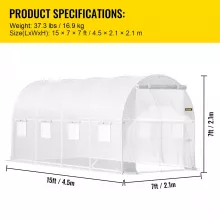 Give your plants the ultimate protection and space to thrive with this spacious 15 x 7 x 7 ft walk-in tunnel greenhouse. Designed to create an optimal environment for growing vegetables, flowers, and other plants, this portable greenhouse is a must-have for gardeners looking to extend their growing season and protect crops from harsh weather conditions.