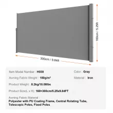 What sets this retractable side awning apart is its combination of durability, ease of use, and stylish design. The high-quality materials provide long-lasting protection, while the easy-to-operate retractable mechanism allows you to adjust your space in seconds. The powder-coated iron frame offers superior strength and corrosion resistance, making this screen a lasting addition to your outdoor setup. With the added benefit of UV and waterproof protection, you can enjoy the outdoors without worrying about the weather. Its practical design not only ensures privacy but also enhances the overall aesthetic of your outdoor area, making it a must-have for any home or business.