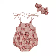 Use our battle tested marketing materials for Baby Girl Summer Romper Tie Strap Bow Print Jumpsuit with Headband