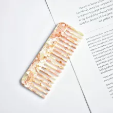 Made from high-quality plastic, this wide-tooth comb measures approximately 4.5 x 11.8 inches—perfect for detangling both wet and dry hair. The smooth, rounded teeth glide through knots without pulling or breakage, making it ideal for all hair types, including curly, thick, or delicate strands. The anti-static design reduces frizz and flyaways, leaving hair smoother and shinier after every stroke. And with its colorful marbled finish, it brings a playful yet polished look to your styling tools.