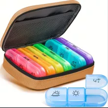 Use our battle tested marketing materials for Weekly 7-Day Travel Pill Organizer with 3 Compartments a Day and PU Leather Case