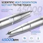 This electric nail drill is a game-changer for both professionals and beginners. It’s ideal for everyday nail maintenance, gel polish removal, acrylic shaping, and even detailed nail art. The high-speed motor allows you to complete manicures in a fraction of the time, saving effort while delivering professional results.