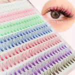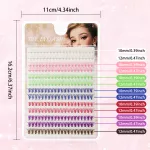 The Rainbow Colored Lash Clusters offer more than just fun colors. Their D curl shape and dual-length design provide professional-level volume and lift, while the colorful palette inspires creativity for every skill level. Unlike traditional black lash sets, this collection encourages you to explore your artistic side — blending and building vibrant lash looks that suit any mood or theme.