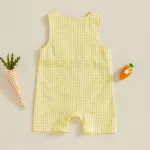 Celebrate your baby's first Easter in style with this charming sleeveless romper! Designed for both baby boys and girls, this festive jumpsuit features delightful egg and bunny embroidery on soft plaid fabric, making it perfect for springtime fun, family gatherings, and Easter egg hunts. With its comfortable crewneck design and easy snap closure, dressing your little one has never been easier—or cuter. Whether you're planning a seasonal photoshoot or attending a holiday brunch, this romper is a picture-perfect choice. The playful plaid print paired with sweet spring-themed embroidery adds a timeless touch of joy to your baby’s wardrobe. Lightweight and breathable, it’s ideal for warmer days and playful moments alike. Available in sizes for 0-18 months, this romper offers a great fit with plenty of stretch thanks to its polyester-elastane blend. It's gentle on delicate baby skin while still durable enough to handle crawling, cuddling, and celebrating all day long.Product Features