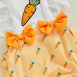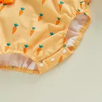 Crafted from a soft blend of 95% polyester and 5% elastane, this romper offers gentle comfort against your baby’s skin, ideal for warmer weather. The O-neck design and covered button closure make it easy to dress your baby while ensuring a secure fit. The short sleeves keep your little one cool during the spring and summer months, while the delicate lace fly sleeves add a touch of elegance. The vibrant carrot embroidery on the front brings a playful, festive look, making it perfect for Easter or any fun celebration.