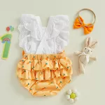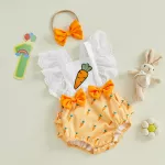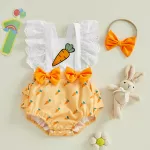 Celebrate your baby's first Easter or any occasion with this Baby Girls Easter Romper. Featuring cute carrot embroidery and lace fly sleeves, this romper is as charming as it is comfortable. Perfect for springtime, this romper comes with a matching headband, making it an adorable outfit for your little princess. Whether for Easter, a birthday, or just a special day, this romper will make your baby look absolutely precious while keeping them cozy and stylish.