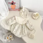 What makes this outfit special is its combination of practical comfort and timeless design. With thoughtful details like the ruffled trim and matching hat, it goes beyond a basic baby outfit to become a standout piece. The vintage floral print brings a classic charm, while the one-piece silhouette ensures hassle-free wear for both parents and baby.