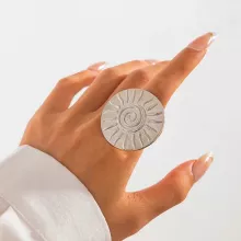 Use our battle tested marketing materials for Exaggerated Large Sunflower Round Metal Stud Earring & Open Adjustable Finger Ring