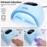 Its sleek, lightweight design makes it portable and perfect for travel, yet powerful enough for professional use. USB powered and compatible with various voltage ranges, this nail lamp is both convenient and efficient—no bulky adapters required. With its smart timing function and high power output, you can enjoy a smooth and mess-free manicure experience wherever you go.
