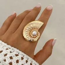 Use our battle tested marketing materials for Exaggerated Big Conch Snail Gold Color Ring for Women - Vintage Adjustable Grunge Jewelry with Imitation Pearls