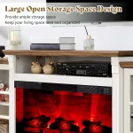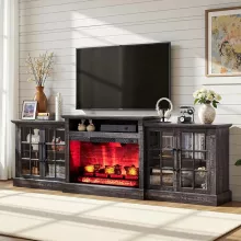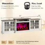 Bring cozy charm and practical elegance into your home with this 97" Farmhouse Fireplace TV Stand. Designed to be the centerpiece of your living room, this entertainment center blends rustic character with modern convenience. With a built-in 33" electric fireplace, spacious storage, and adjustable shelving, it's the perfect fusion of function and flair for any family gathering space or media room.