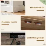 Crafted from engineered wood and metal, this entertainment center is built with durability in mind. Magnetic closures on the cabinet doors ensure smooth, secure operation, and the painted finish adds a refined touch to the rustic charm. It's a piece that’s as functional as it is visually appealing—perfect for everyday use and special occasions alike.