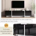 Bring a touch of sophistication to your space with this Modern TV Stand, crafted for flat and curved screen TVs up to 80 inches. With its bold contrast of white and black wood accented by high-gloss UV finish, this entertainment center isn’t just furniture—it’s a statement. Whether you're upgrading your media area or setting up a new home, this TV stand seamlessly blends style and practicality, giving your room a clean, contemporary look.