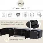 Designed for more than just looks, this entertainment unit is built with convenience in mind. It offers generous storage space including 2 small drawers and 3 large cabinets with shelves, perfect for storing game consoles, streaming devices, DVDs, remotes, and more. With high-quality hardware, smooth drawer slides, and sturdy hinges, this unit is built to handle daily use without wear.