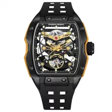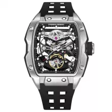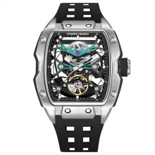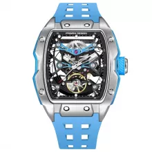 What sets this timepiece apart is its alien-inspired skeleton design—a window into the intricate world of mechanical movement. The combination of a transparent dial, curved tonneau case, and sapphire crystal finish creates a luxury watch that’s as much a conversation piece as it is a practical accessory. Every element is crafted for those who appreciate innovation, durability, and fearless style.