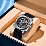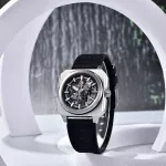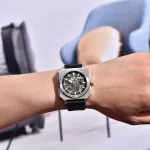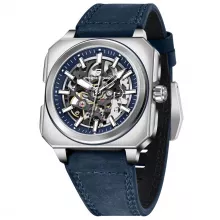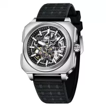 This wristwatch features an automatic self-winding movement paired with a stunning skeleton tourbillon, allowing you to watch time come alive with every tick. The case is carved in a sharp square shape for a modern aesthetic, while the durable rubber strap ensures comfort through every adventure. The scratch-resistant sapphire glass offers crystal-clear clarity and resilience, making this watch a companion for life’s most refined and rugged moments.