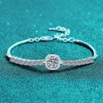 Designed with light luxury in mind, this bracelet is perfect for anyone who appreciates understated elegance with a pop of unique style. The combination of Moissanite and sterling silver is both refined and durable, ensuring that this bracelet will be a cherished addition to your jewelry collection for years to come. Whether worn to a formal event, an anniversary celebration, or as an everyday statement piece, this bracelet will elevate your style effortlessly.