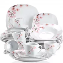 Use our battle tested marketing materials for 30-Piece White Porcelain Dinnerware Set with Pink Floral Design