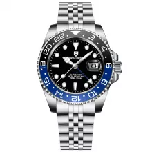 Elevate your style and confidence with this striking 40MM GMT Automatic Men's Watch, crafted for those who demand both elegance and endurance. Designed with meticulous attention to detail, this luxury timepiece features a gleaming stainless steel body, ultra-clear synthetic sapphire glass, and a sleek ceramic bezel for added durability and sophistication. Its numberless dial and luminous hands make it a modern classic—refined, functional, and ready to keep pace with your every move.