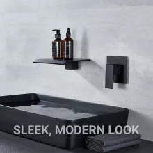 The true standout feature is the elegant waterfall spout, which delivers a gentle cascade of water that elevates your bath time to something extraordinary. Combined with the bold matte black finish and an integrated shelf for added convenience, this faucet is the perfect blend of style and substance.