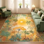 What sets this rug apart is the seamless combination of aesthetics and comfort. The jungle-inspired sunset tones bring warmth and a hint of adventure, while the restful tiger print adds artistic charm without overwhelming your space. It's more than a rug — it's a statement piece that grounds your room in natural beauty.