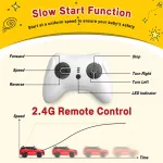 Designed to look and feel like a real truck, this ride-on includes working LED headlights, a horn, engine start sounds, and an MP3 player that connects via AUX or Bluetooth — so kids can jam to their favorite tunes while driving. It also features a soft start function and four-wheel shock absorbers for smooth, safe rides on various surfaces. The built-in rocking mode transforms the car into a fun indoor toy even when parked, offering relaxing motion that kids will love.