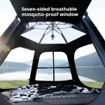 This tent opens in seconds with its quick automatic mechanism—no complicated instructions, no stress. Multi-sided mesh windows promote constant airflow, keeping the interior fresh and cool. When you're ready to move, it folds down neatly into a compact size, easy to transport and store. Whether you're at the beach, in the forest, or on a mountainside, this tent is built to keep you comfortable, dry, and ready for more adventure.