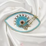Bring charm and purpose to your vanity, nightstand, or dresser with this beautifully crafted Ceramic Evil Eye Jewelry Tray. Designed for those who love a touch of elegance with meaning, this trinket dish is more than just a place to drop your rings and earrings—it’s a stylish statement piece infused with positive energy. Featuring the ancient symbol of the Evil Eye, it adds a layer of spiritual protection while keeping your favorite jewelry organized and easily accessible.