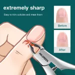 Crafted with care from high-quality stainless steel, this cuticle trimmer is resistant to rust, durable enough for daily use, and easy to sanitize. The uniquely engineered built-in spring reduces hand strain while providing consistent pressure, making each clip feel smooth and controlled. Its ultra-sharp, narrow blades allow for precise removal of dead skin, hangnails, and unwanted cuticle growth without tugging or tearing.