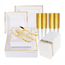 Use our battle tested marketing materials for Square Gold Disposable Dinnerware Set