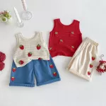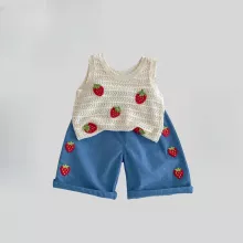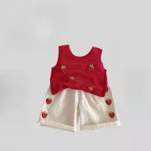 This outfit isn’t just cute — it’s also practical. The sleeveless vest ensures your child stays cool, while the relaxed wide-leg pants give her room to move without restriction. The playful strawberry design adds a touch of sweetness that makes it stand out from everyday kids' clothes. It’s the perfect combo of fashion and function, and an absolute must-have in your little girl’s summer wardrobe. Whether she's taking her first steps or running through the playground, this 2-piece set offers comfort, cuteness, and carefree summer vibes — all in one. It’s easy to wear, easy to love, and hard to resist.Give Her the Gift of Comfort and Style