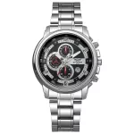 Built with a durable stainless steel strap and a solid alloy case, this watch combines functionality with masculine elegance. The numberless dial keeps things clean and bold, while the quartz movement ensures precise timekeeping you can rely on. It features shock-resistant construction and an auto date display, making it a practical choice for daily wear with a luxury edge. The large 1.7-inch dial diameter and wide band design make this watch stand out on any wrist.