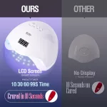 - Four Timer Settings: Choose from four timer options for complete control over your nail curing process: 10s, 30s, 60s, and 99s (low heat mode).