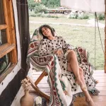 Whether you’re having a picnic in the park, lounging on the beach, or need a cozy blanket for your sofa, this multi-purpose throw is ideal for all your needs. Its lightweight design makes it easy to take along for trips and outdoor adventures, while its comfortable fabric keeps you warm on cool evenings and cool in the heat of summer. With its classic bohemian design, it’s also a great addition to your living space, whether draped over your sofa or spread out as a decorative piece in your bedroom or living room.